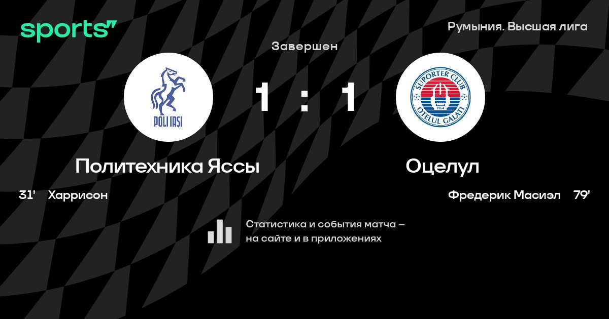 Поли Яссы – Оцелул: Поли Яссы не пропускает в 1 из 7 последних матчей против этого соперника