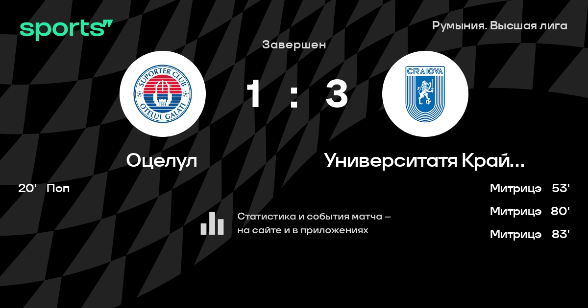 Оцелул – КСУ Крайова: КСУ Крайова не пропускает в 3 последних матчах против этого соперника
