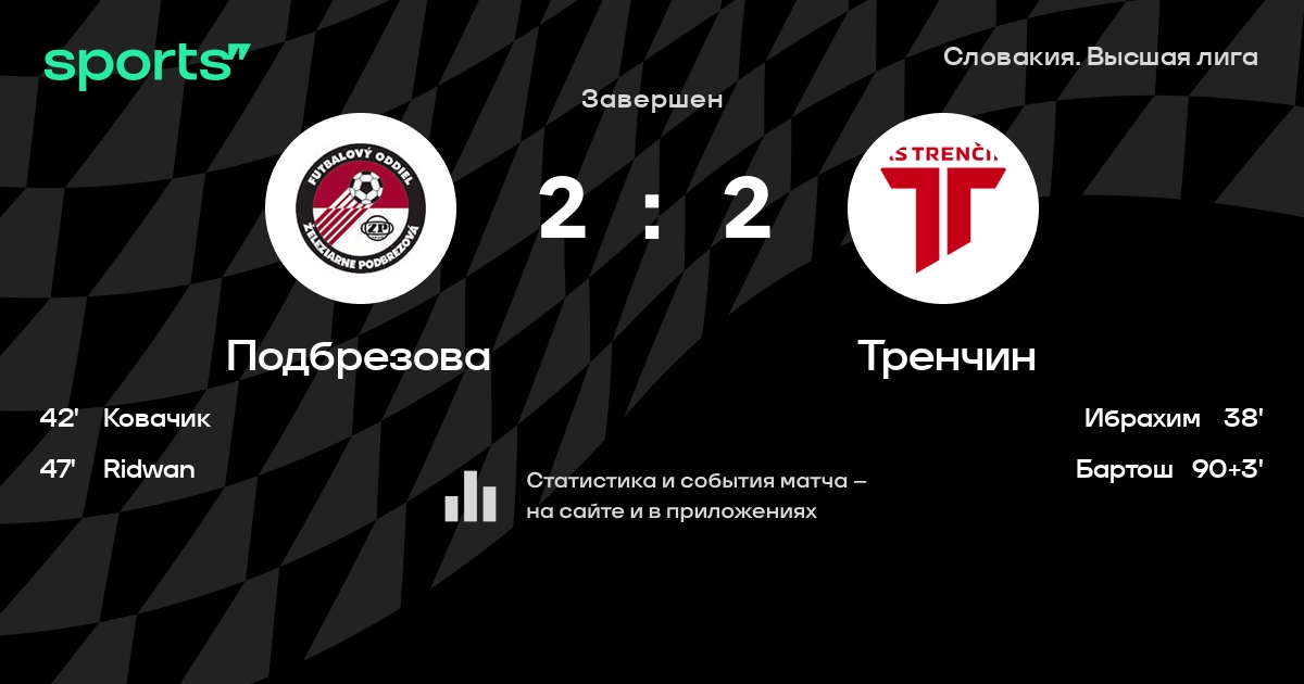 Подбрезова – Тренчин: Тренчин не проигрывает в 5 из 7 последних матчей против этого соперника