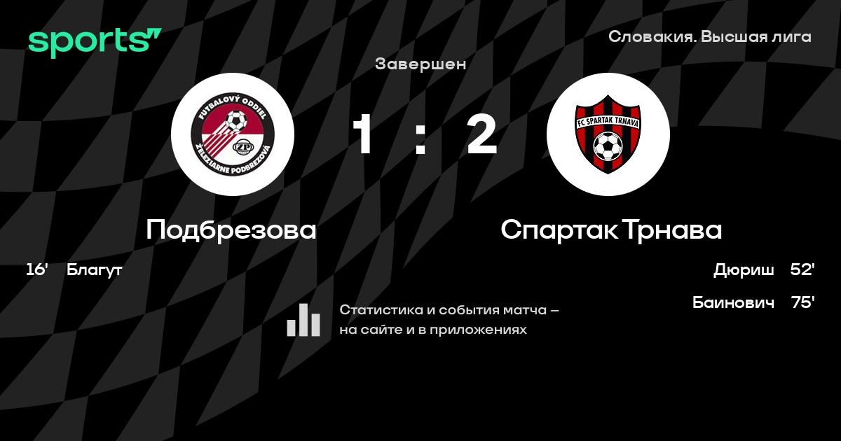 Трансляция Подбрезова - Спартак Трнава