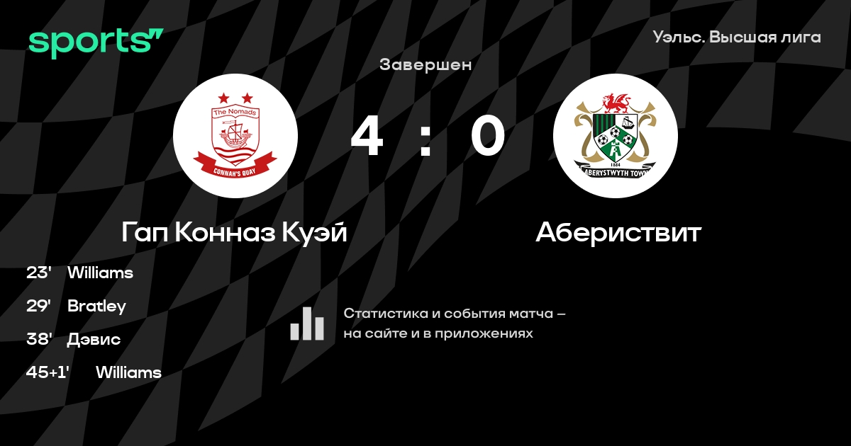 Гап Конназ Куэй – Абериствит: Гап Конназ Куэй не проигрывает в 12 из 14 последних матчей против этого соперника