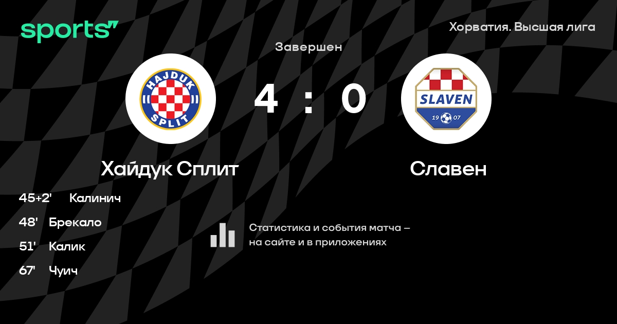 Хайдук Сплит – Славен: Хайдук Сплит побеждает в 5 последних очных матчах