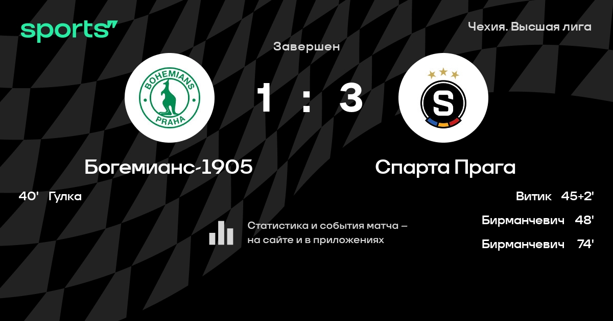 Богемианс-1905 – Спарта Прага: Спарта Прага побеждает в 4 последних очных матчах