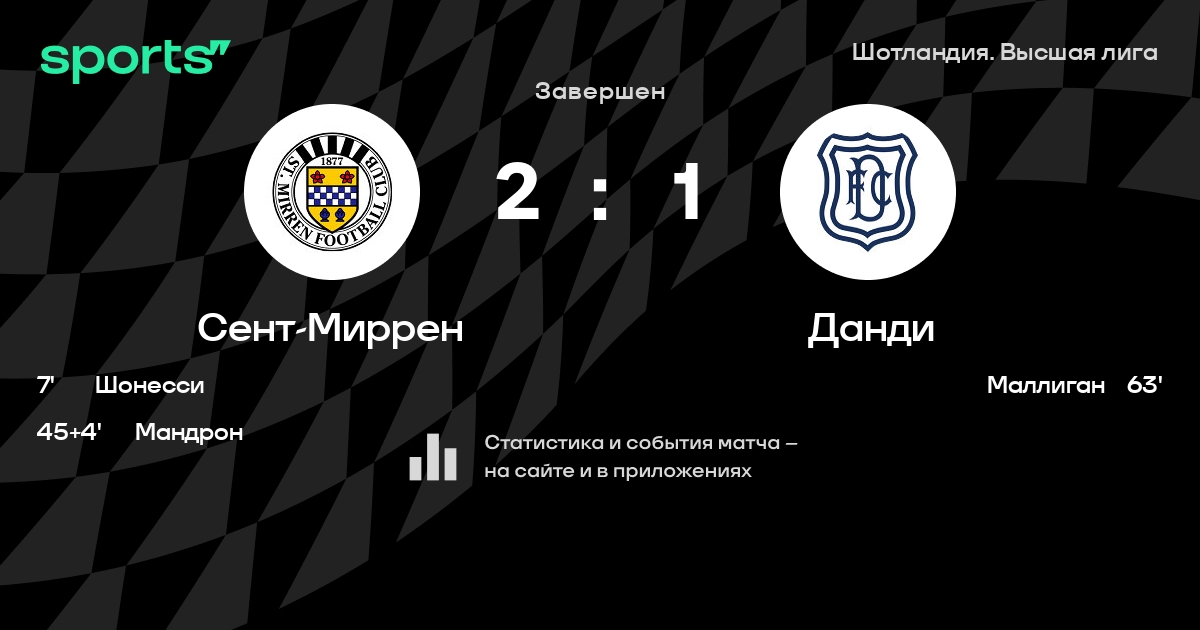 Сент-Миррен – Данди: Сент-Миррен побеждает в 3 последних очных матчах