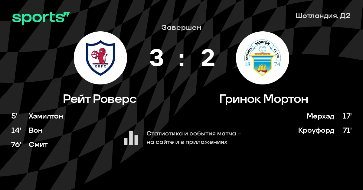 Рейт Роверс – Гринок Мортон: Гринок Мортон не проигрывает в 5 из 7 последних матчей против этого соперника в турнире «Чемпионшип»