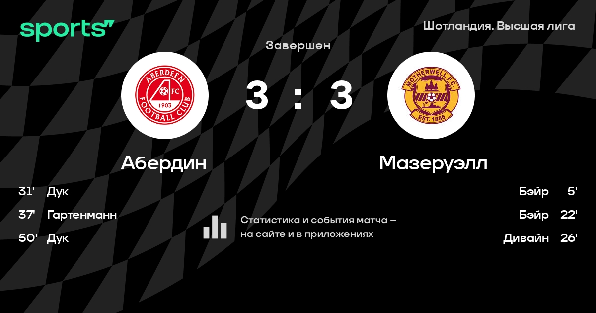 Абердин – Мазеруэлл: Мазеруэлл забивает в 8 последних матчах против этого соперника