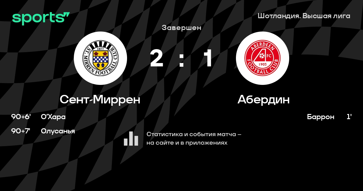 Сент-Миррен – Абердин: Абердин забивает в 5 из 7 последних матчей против этого соперника