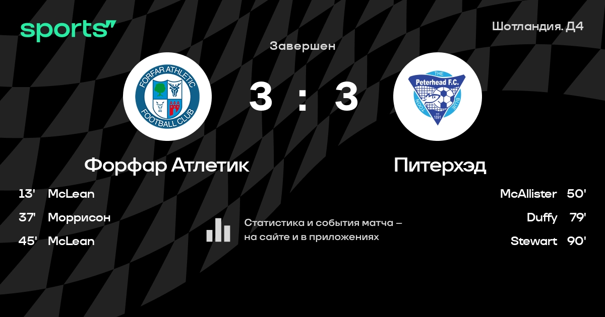 Маккаллум - Бриндли, Hutchinson, Munro, Аллан - Моррисон, Mykyta, Robson - Scally, McLean, Finlay AllanЗапасные: Paris, Ндити, Инглис, Лоббан, Mohammed, Мур, Томсон, Уотли, Скелли