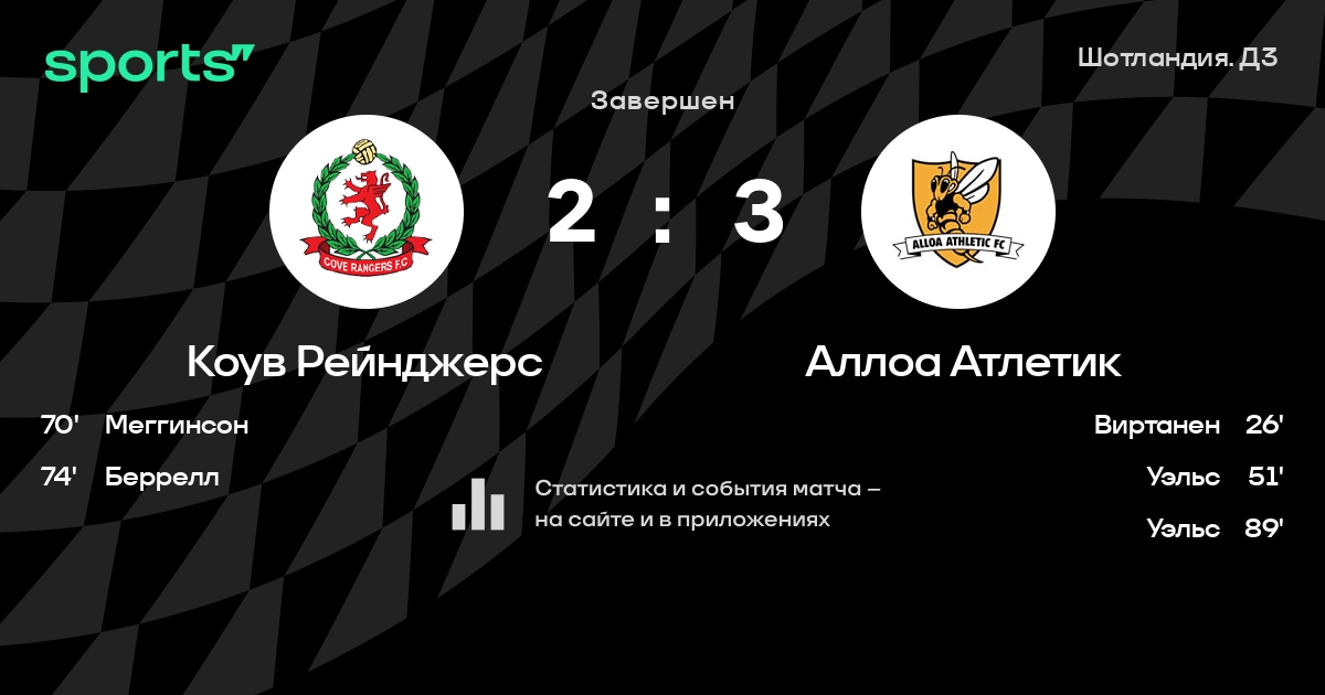 Коув Рейнджерс – Аллоа Атлетик: Аллоа Атлетик забивает в 3 последних матчах против этого соперника