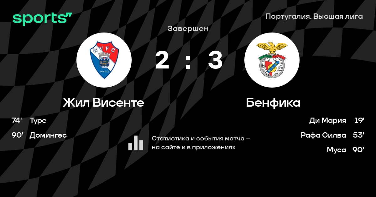 Жил Висенте – Бенфика: Бенфика побеждает в 5 последних очных матчах в гостях