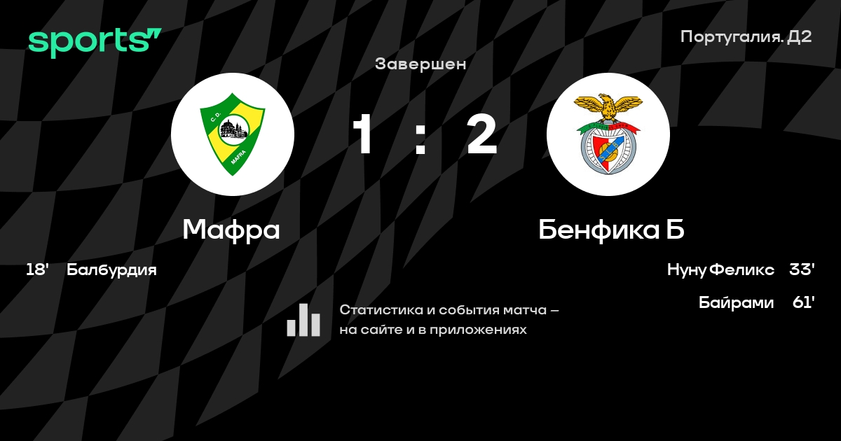 Мафра – Бенфика Б: Мафра не проигрывает в 6 последних матчах против этого соперника дома