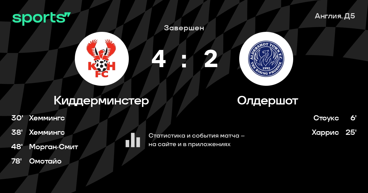 Киддерминстер не выигрывает в 5 последних матчах в турнире «Д5. Национальная лига»