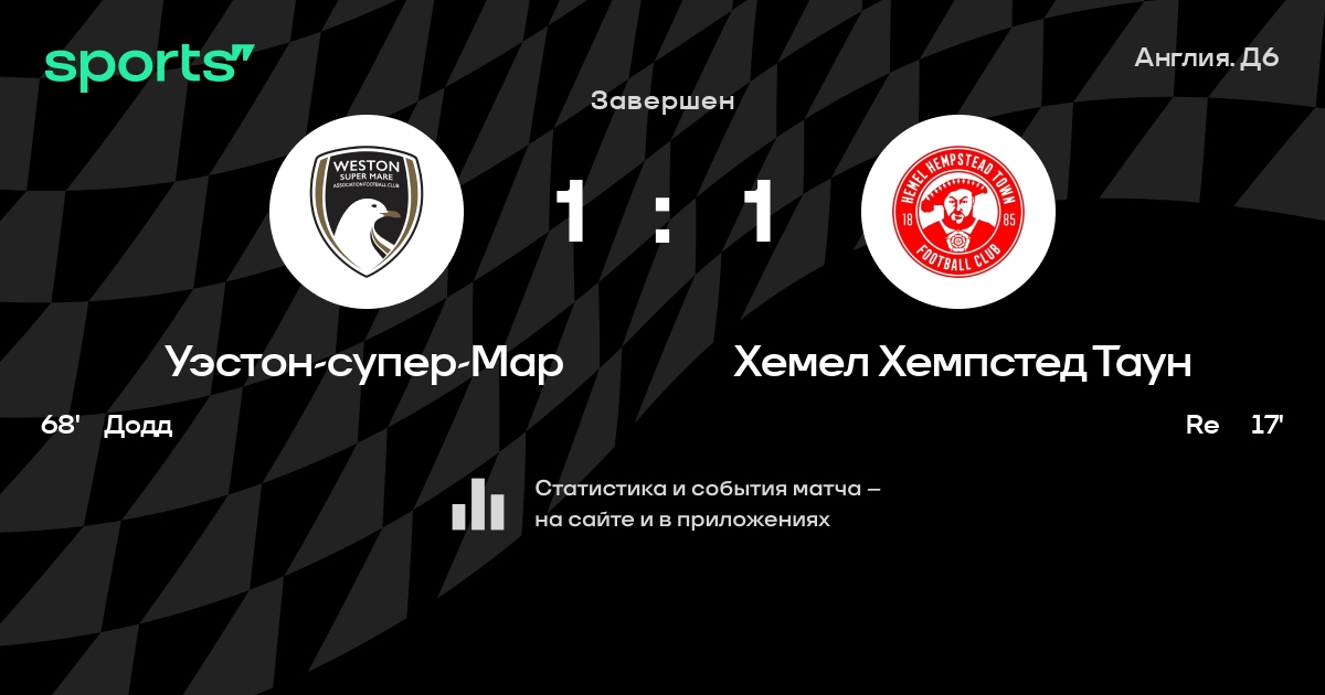 Уэстон-супер-Мар – Хемел Хемпстед Таун: Уэстон-супер-Мар забивает в 10 последних матчах против этого соперника