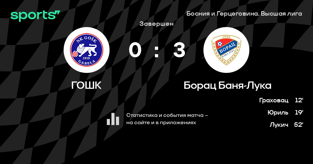 ГОШК – Борац Баня-Лука: Борац Баня-Лука не пропускает в 0 из 8 последних матчей против этого соперника