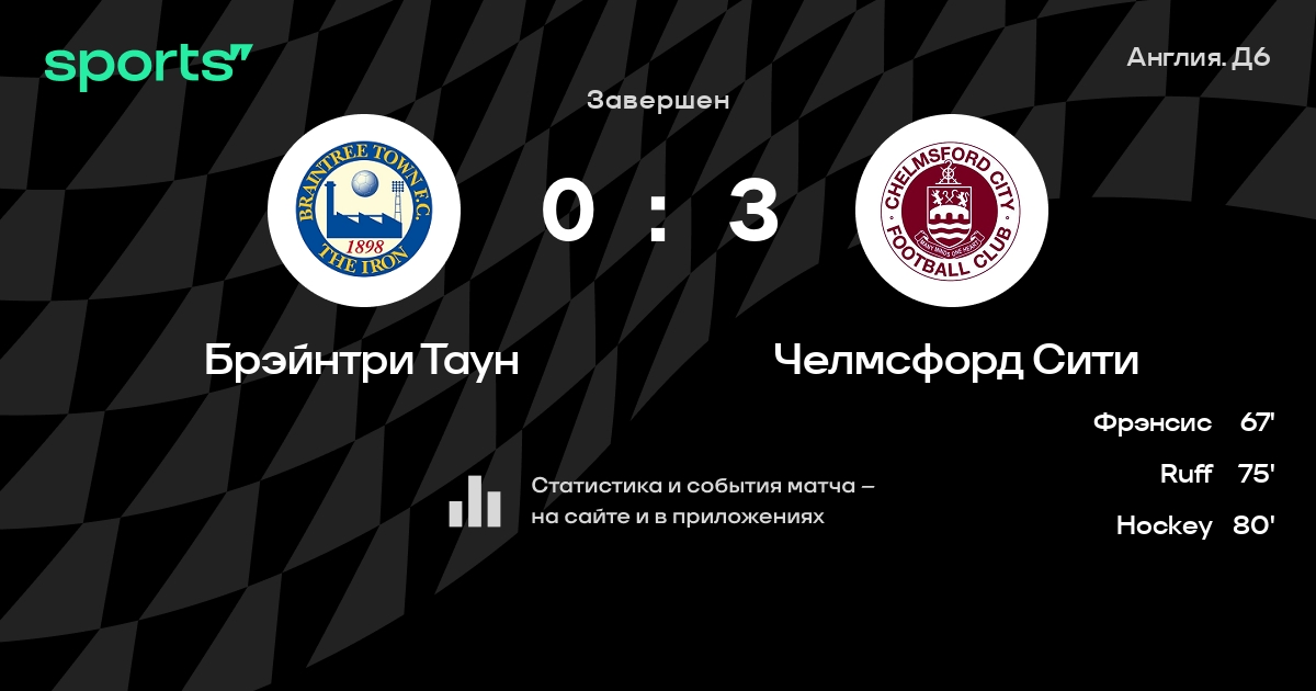 Брэйнтри Таун – Челмсфорд Сити: Челмсфорд Сити забивает в 7 последних матчах против этого соперника