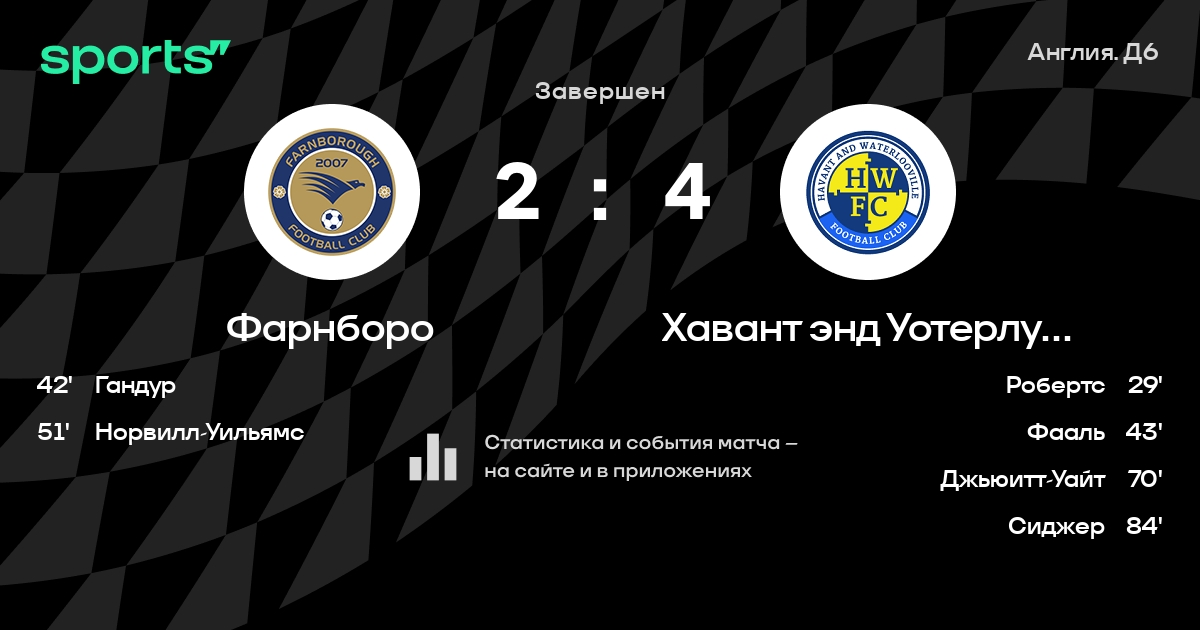 Фарнборо – Хавант энд Уотерлувилл: Хавант энд Уотерлувилл не проигрывает в 7 из 9 последних матчей против этого соперника