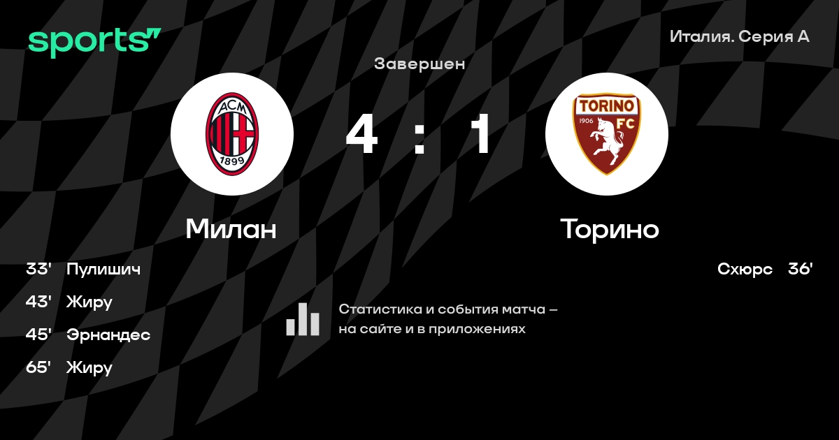 Милан – Торино: Милан не проигрывает в 16 из 17 последних матчей против этого соперника дома