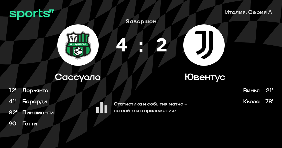 Сассуоло – Ювентус: Ювентус забивает в 15 из 17 последних матчей против этого соперника