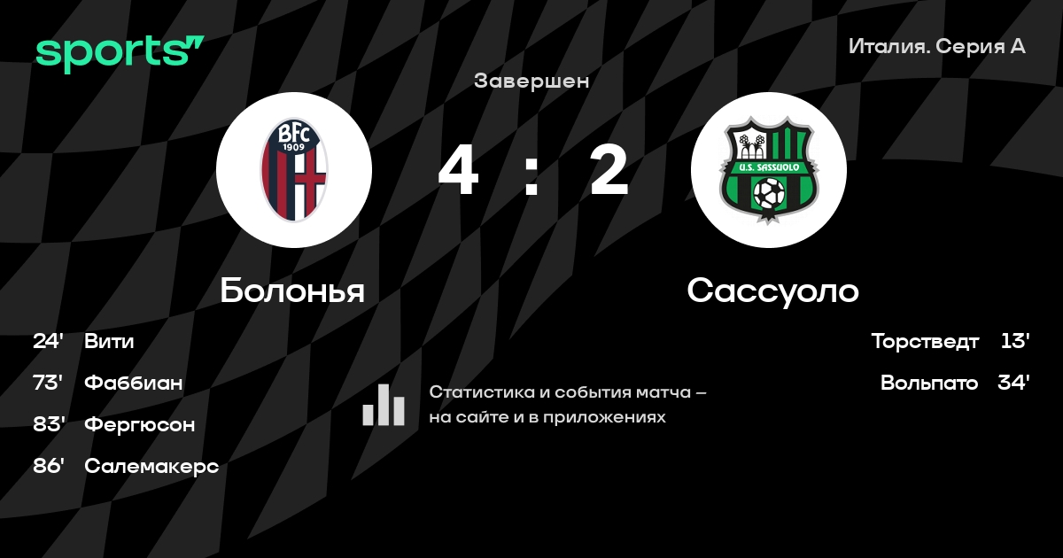 Болонья – Сассуоло: Болонья не проигрывает в 5 из 7 последних матчей против этого соперника