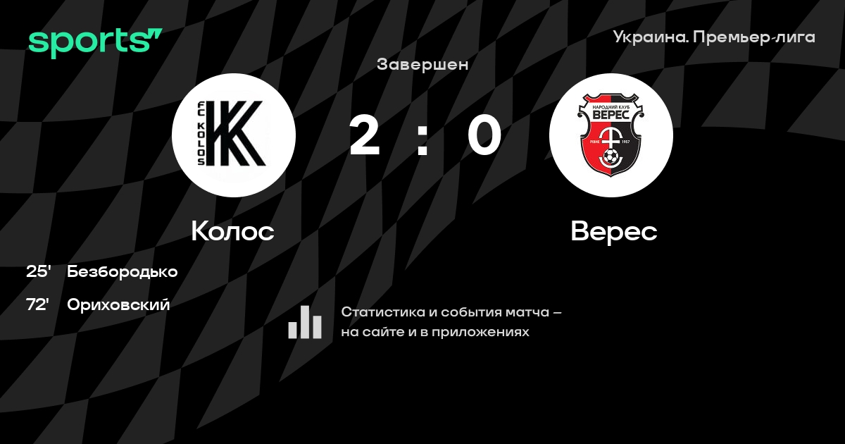 Колос – Верес: Колос побеждает в 3 последних очных матчах в турнире «Премьер-лига»