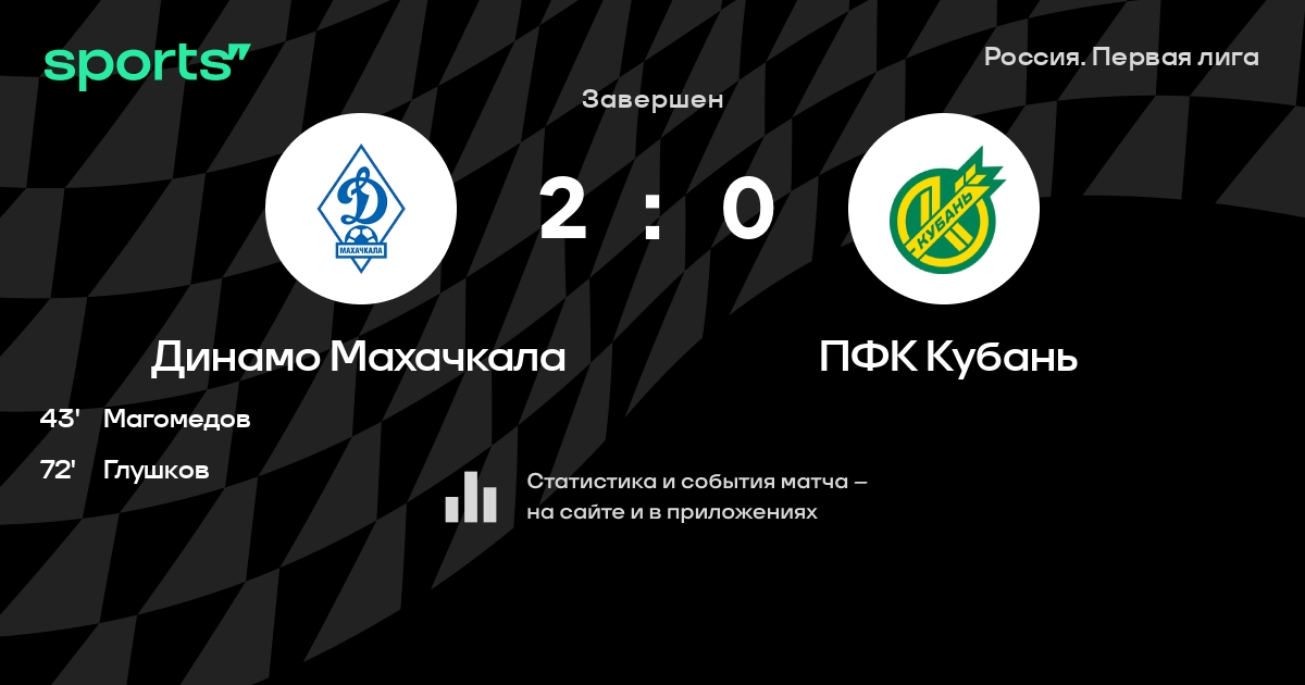 Динамо Махачкала – Кубань: Динамо Махачкала побеждает в 3 последних очных матчах