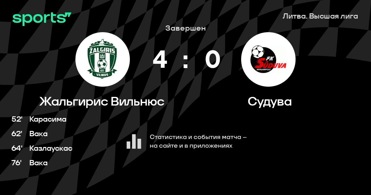 Жальгирис Вильнюс – Судува: Жальгирис Вильнюс забивает в 5 последних матчах против этого соперника
