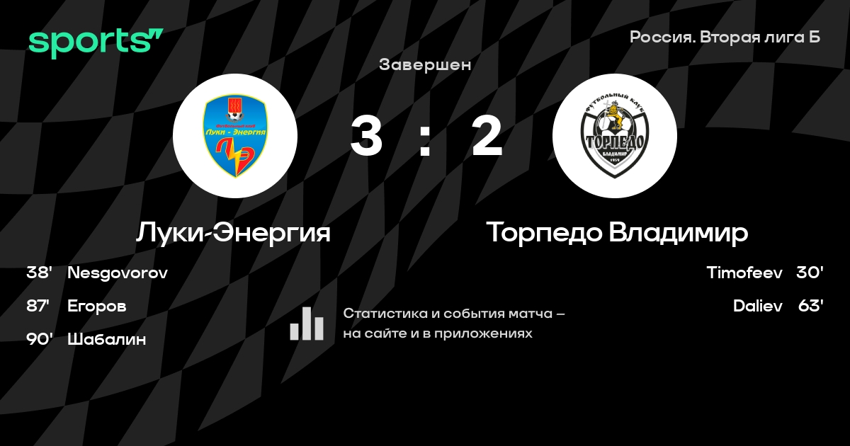 Луки-Энергия – Торпедо Владимир: Луки-Энергия забивает в 5 последних матчах против этого соперника