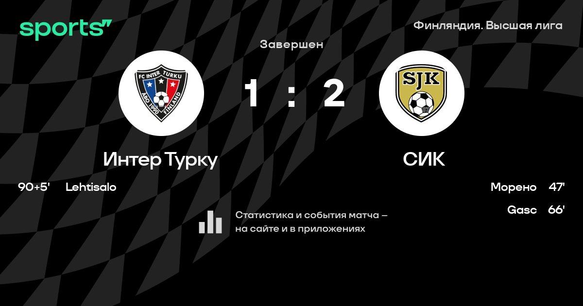 Интер Турку – СИК: Интер Турку забивает в 9 последних матчах против этого соперника