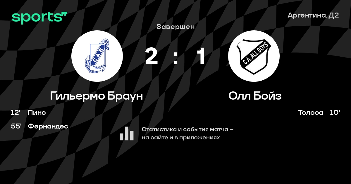 Гильермо Браун – Олл Бойз: Олл Бойз не проигрывает в 5 из 7 последних матчей против этого соперника