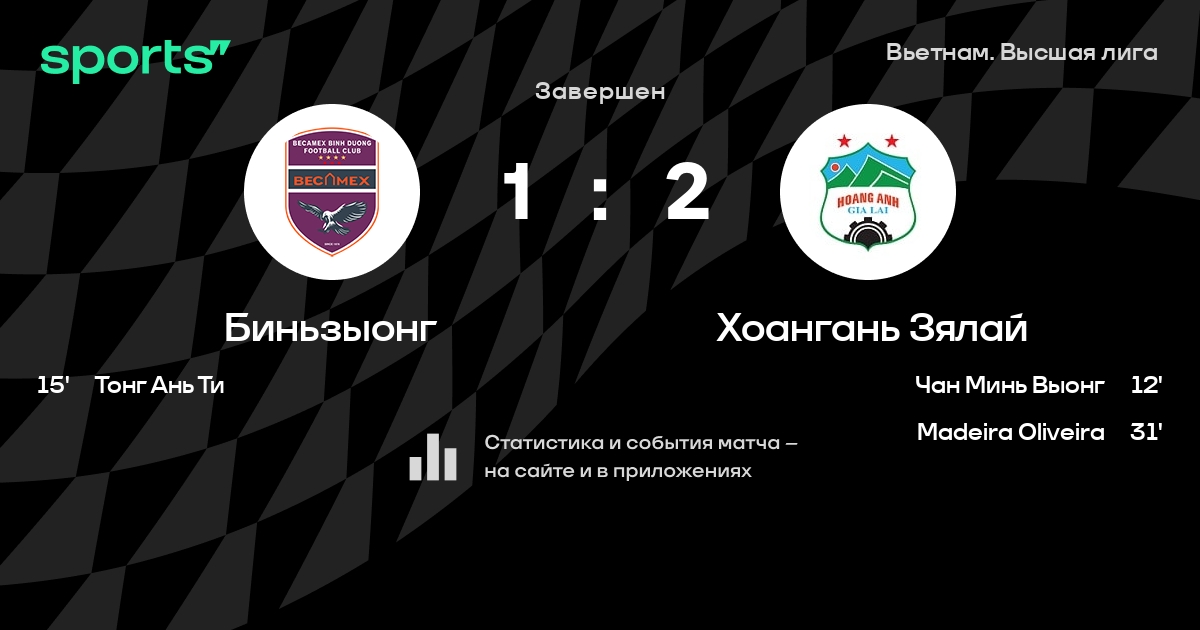 Биньзыонг – Хоангань Зялай: Биньзыонг не проигрывает в 9 из 11 последних матчей против этого соперника