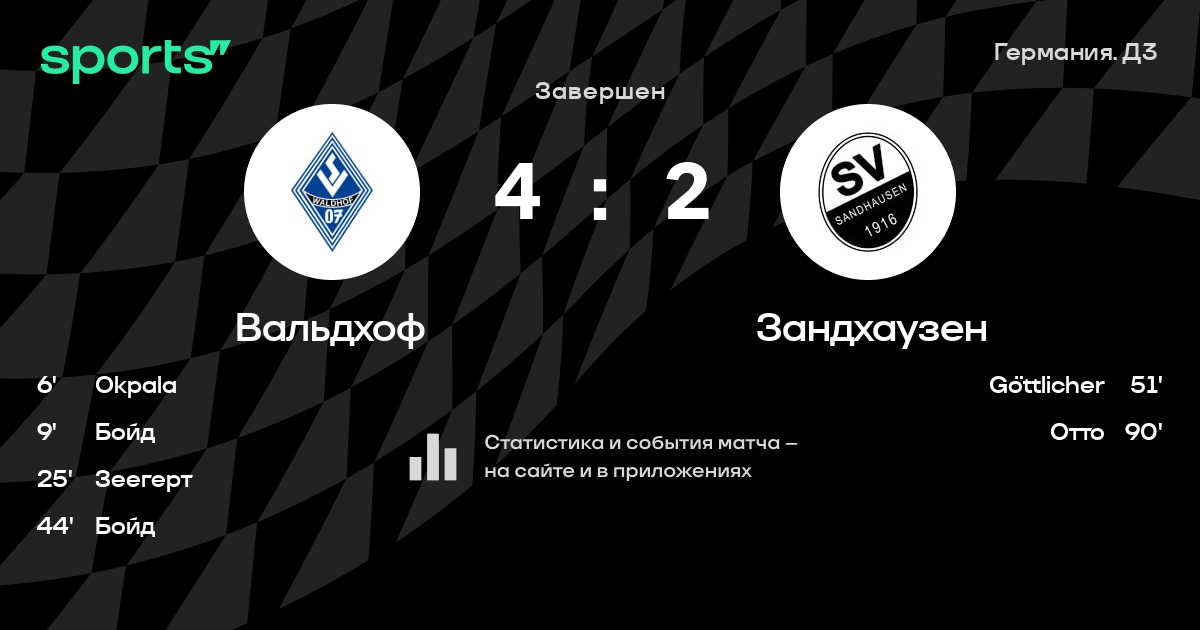 Вальдхоф – Зандхаузен: Вальдхоф забивает в 6 из 7 последних матчей против этого соперника