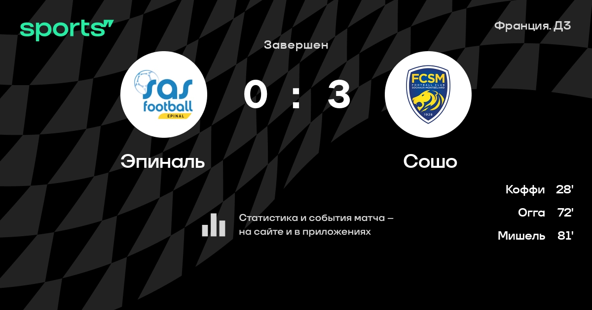 Эпиналь – Сошо: Сошо не пропускает в 0 из 6 последних матчей против этого соперника
