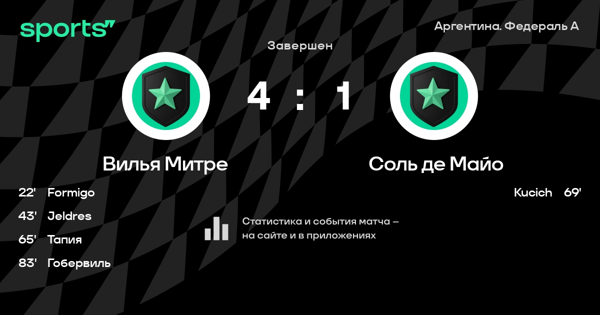 Вилья Митре – Соль де Майо: Вилья Митре забивает в 3 последних матчах против этого соперника