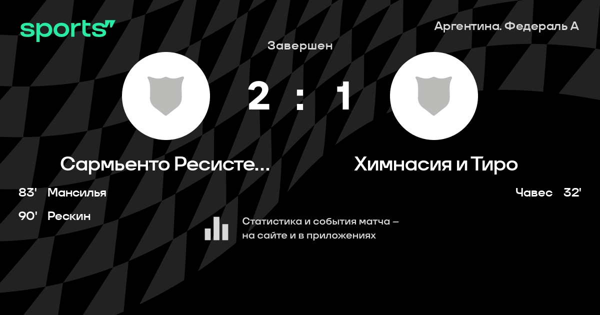 Трансляция Сармьенто Ресистенсия - Химнасия и Тиро