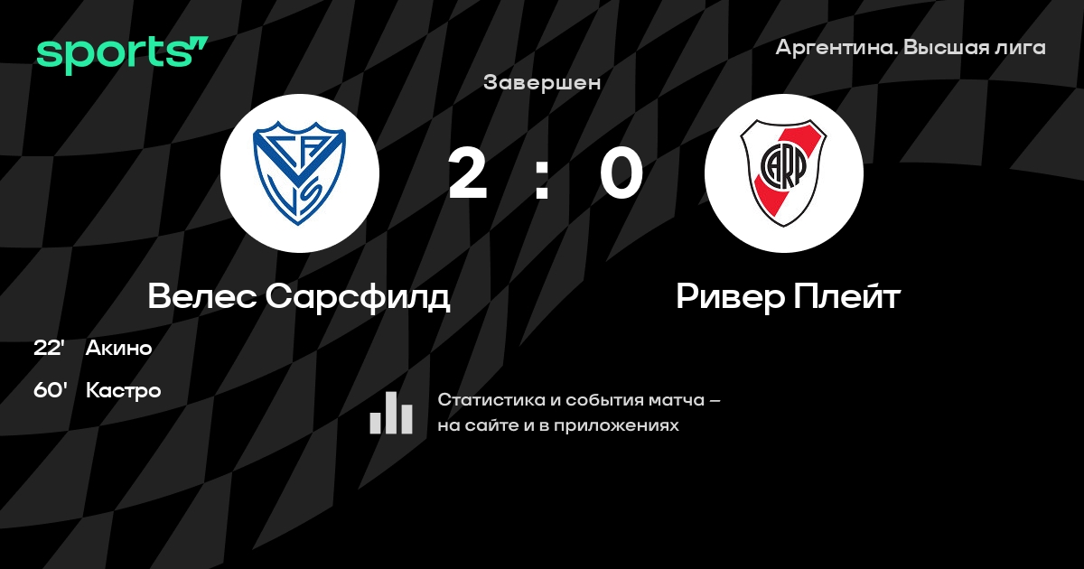Велес Сарсфилд – Ривер Плейт: Ривер Плейт не проигрывает в 6 из 8 последних матчей против этого соперника