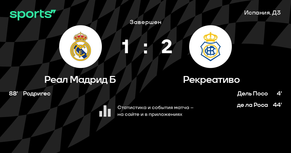 Реал Мадрид Б – Рекреативо: Рекреативо побеждает в 3 последних очных матчах в гостях