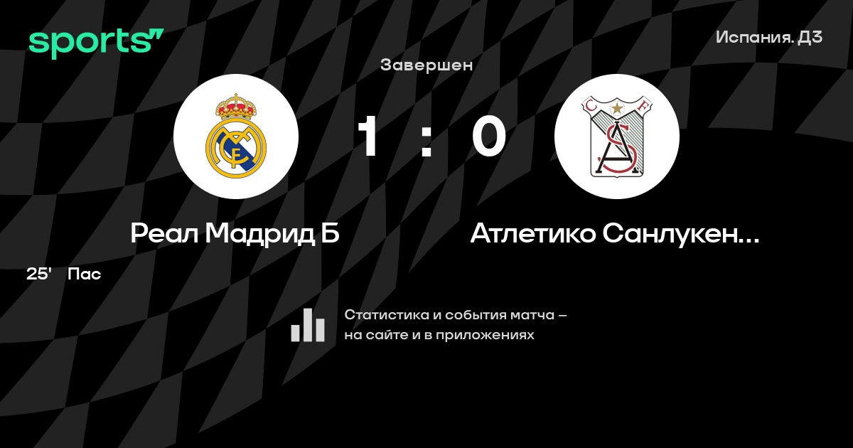 Трансляция Реал Мадрид Б - Атлетико Санлукеньо