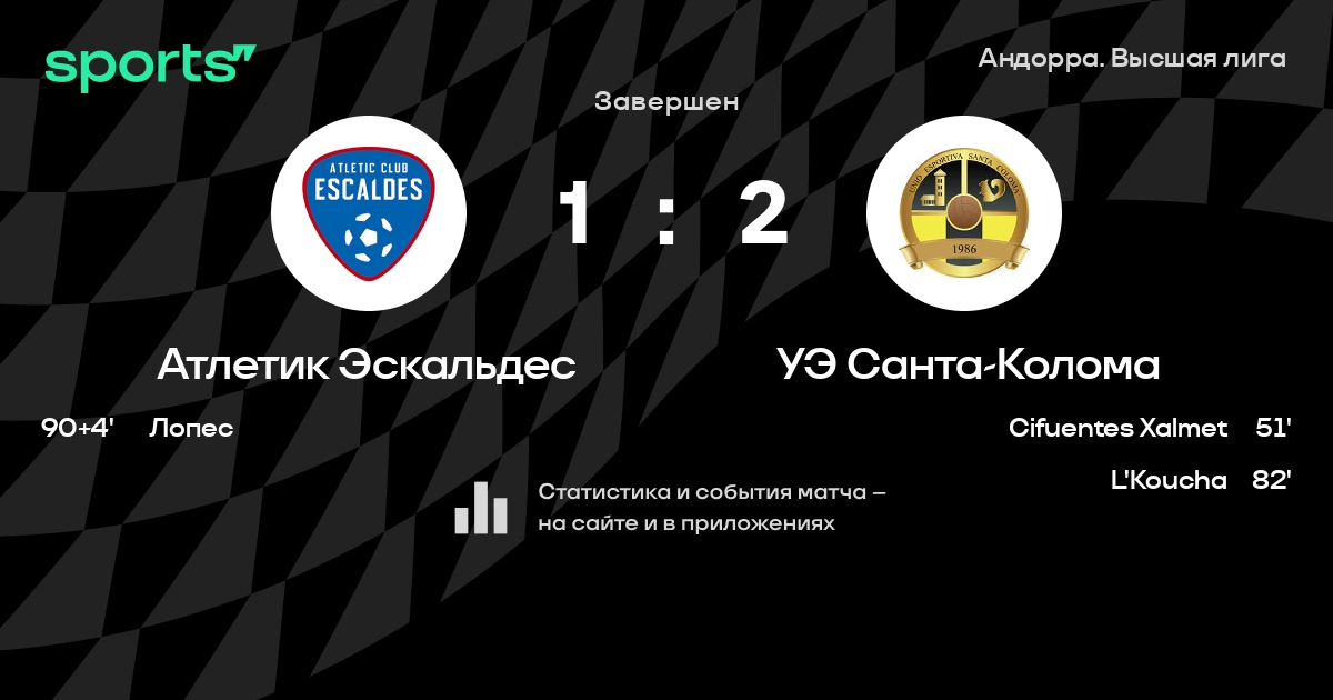 Атлетик Эскальдес – УЭ Санта-Колома: УЭ Санта-Колома забивает в 3 последних матчах против этого соперника