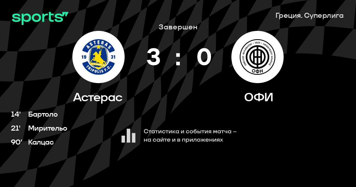 Астерас – ОФИ: Астерас не проигрывает в 11 из 12 последних матчей против этого соперника дома