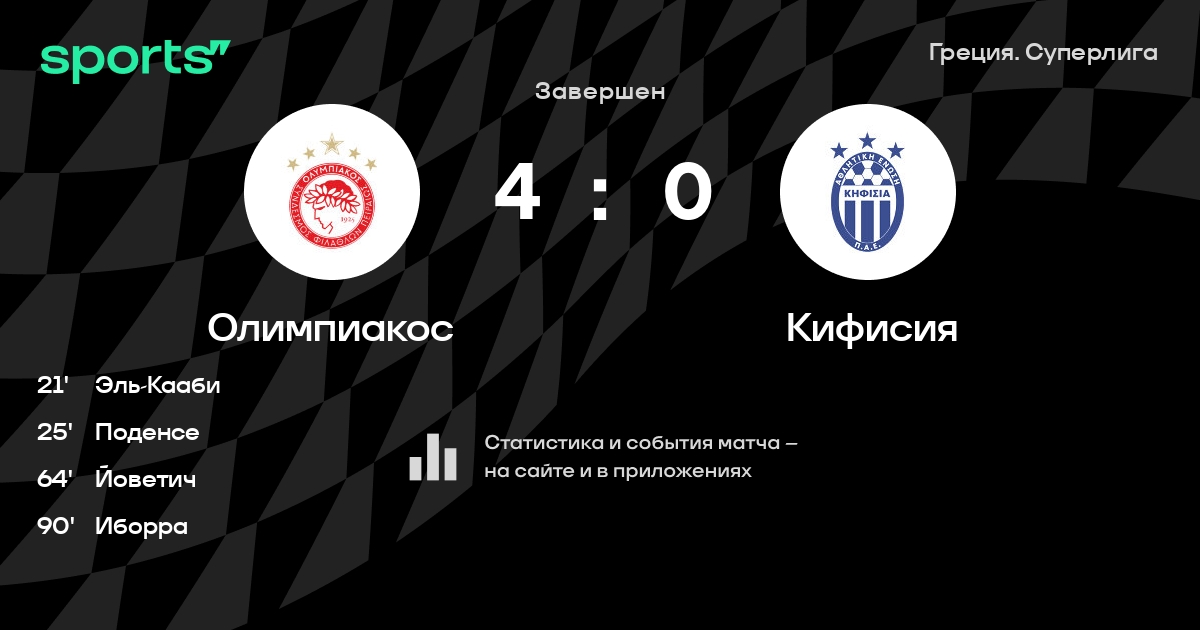 Пасхалакис - Ортега, Нтой, Рецос, Кини - Александропулос, Скарпа, Камара - Сольбаккен, Эль-Кааби, ПоденсеЗапасные: Цолакис, Поросо, Родиней, Жоау Карвалью, Пеп Бьель, Фортунис, Йоветич, Масурас