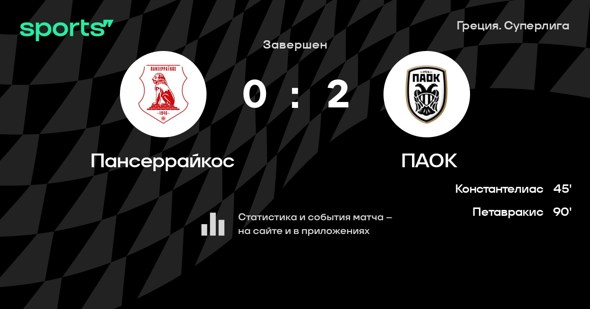 Пансеррайкос – ПАОК: ПАОК не пропускает в 4 последних матчах против этого соперника