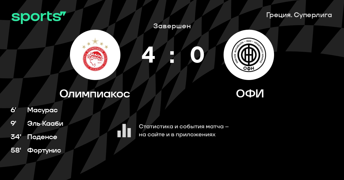 Олимпиакос – ОФИ: Олимпиакос забивает в 12 последних матчах против этого соперника