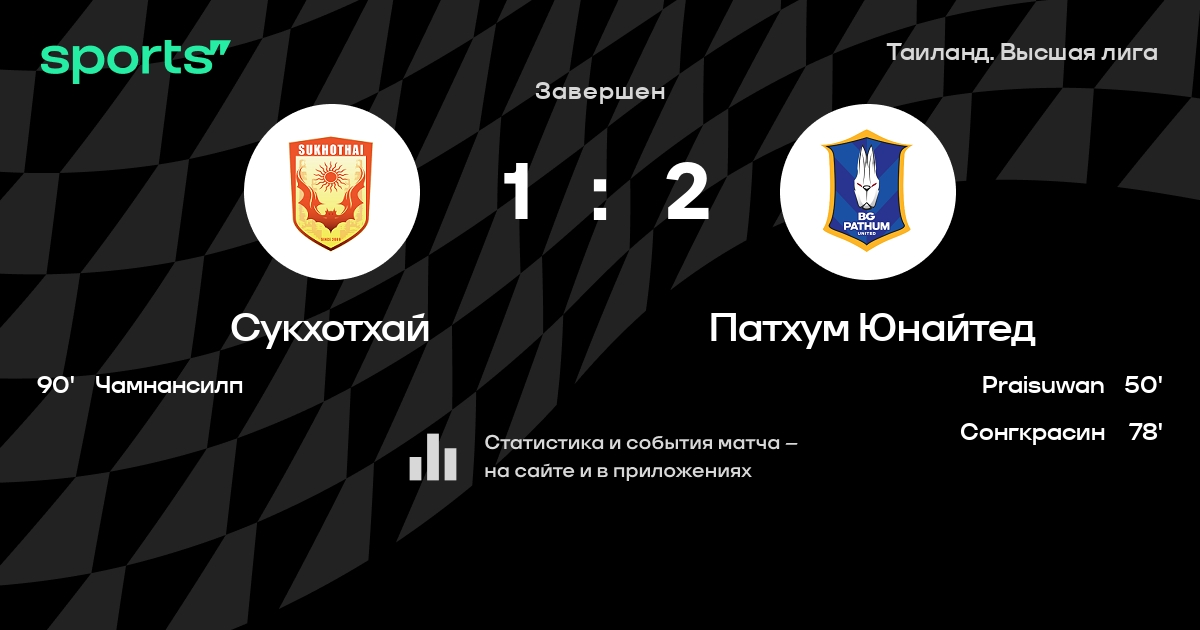 Сукхотхай – Патхум Юнайтед: Сукхотхай забивает в 7 из 9 последних матчей против этого соперника