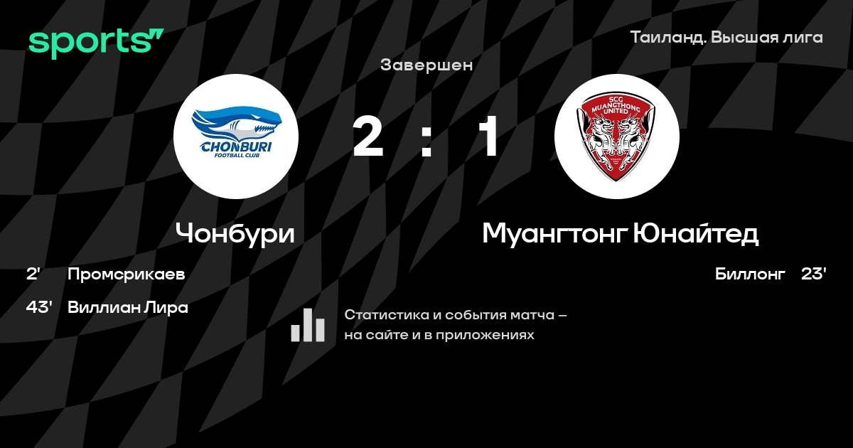 Чонбури – Муангтонг Юнайтед: Муангтонг Юнайтед не проигрывает в 5 из 7 последних матчей против этого соперника