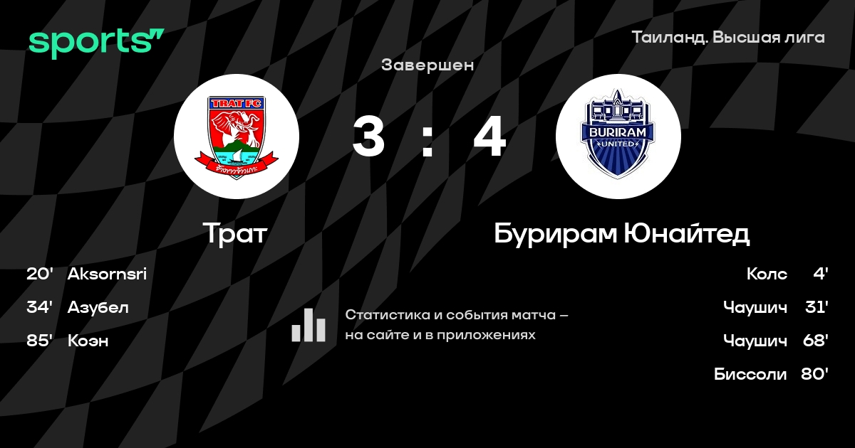 Трат – Бурирам Юнайтед: Бурирам Юнайтед забивает в 5 последних матчах против этого соперника