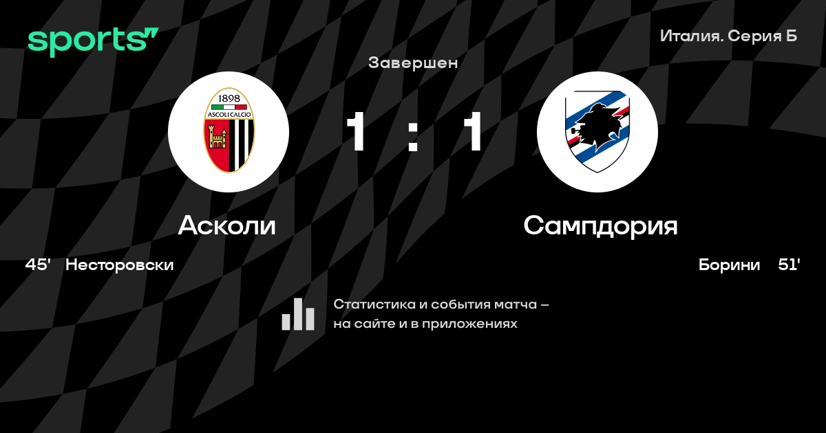 Асколи – Сампдория: Сампдория не проигрывает в 5 последних матчах против этого соперника