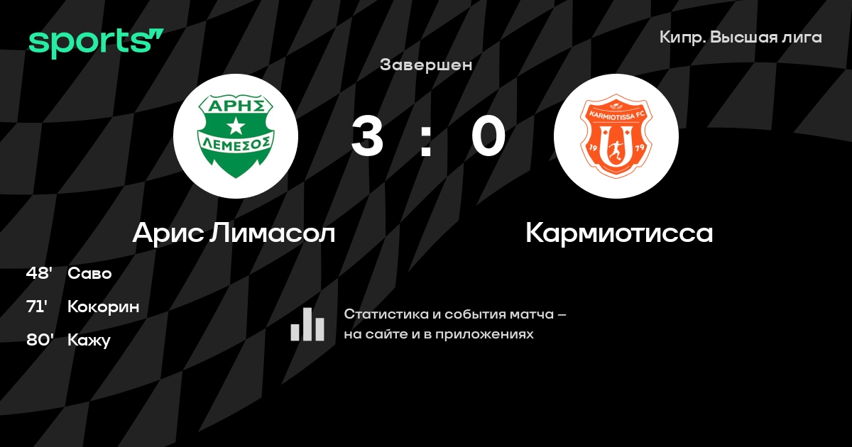Арис Лимасол – Кармиотисса: Кармиотисса не проигрывает в 6 из 7 последних матчей против этого соперника в турнире «Лига 1»