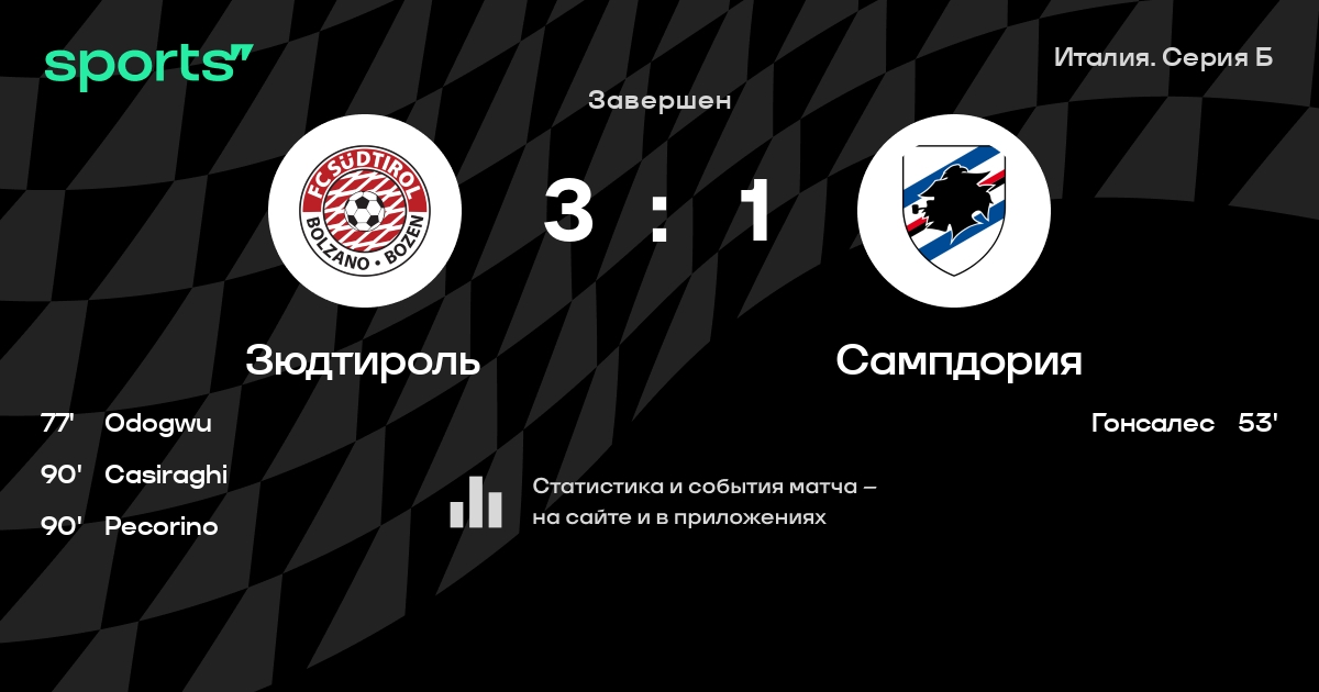 Трансляция Зюдтироль - Сампдория