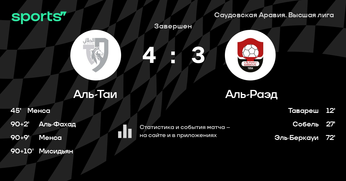 Аль-Таи – Аль-Раэд: Аль-Таи забивает в 3 последних матчах против этого соперника