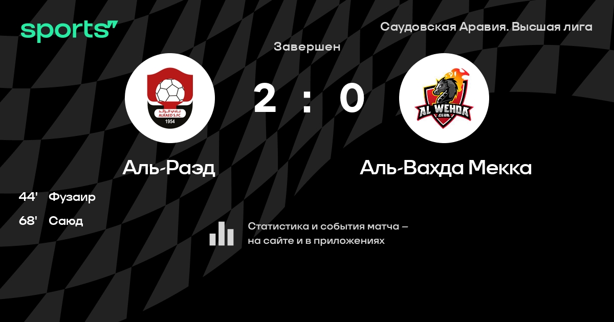 Аль-Раэд – Аль-Вахда Мекка: Аль-Раэд не проигрывает в 5 из 7 последних матчей против этого соперника в турнире «Высшая лига»